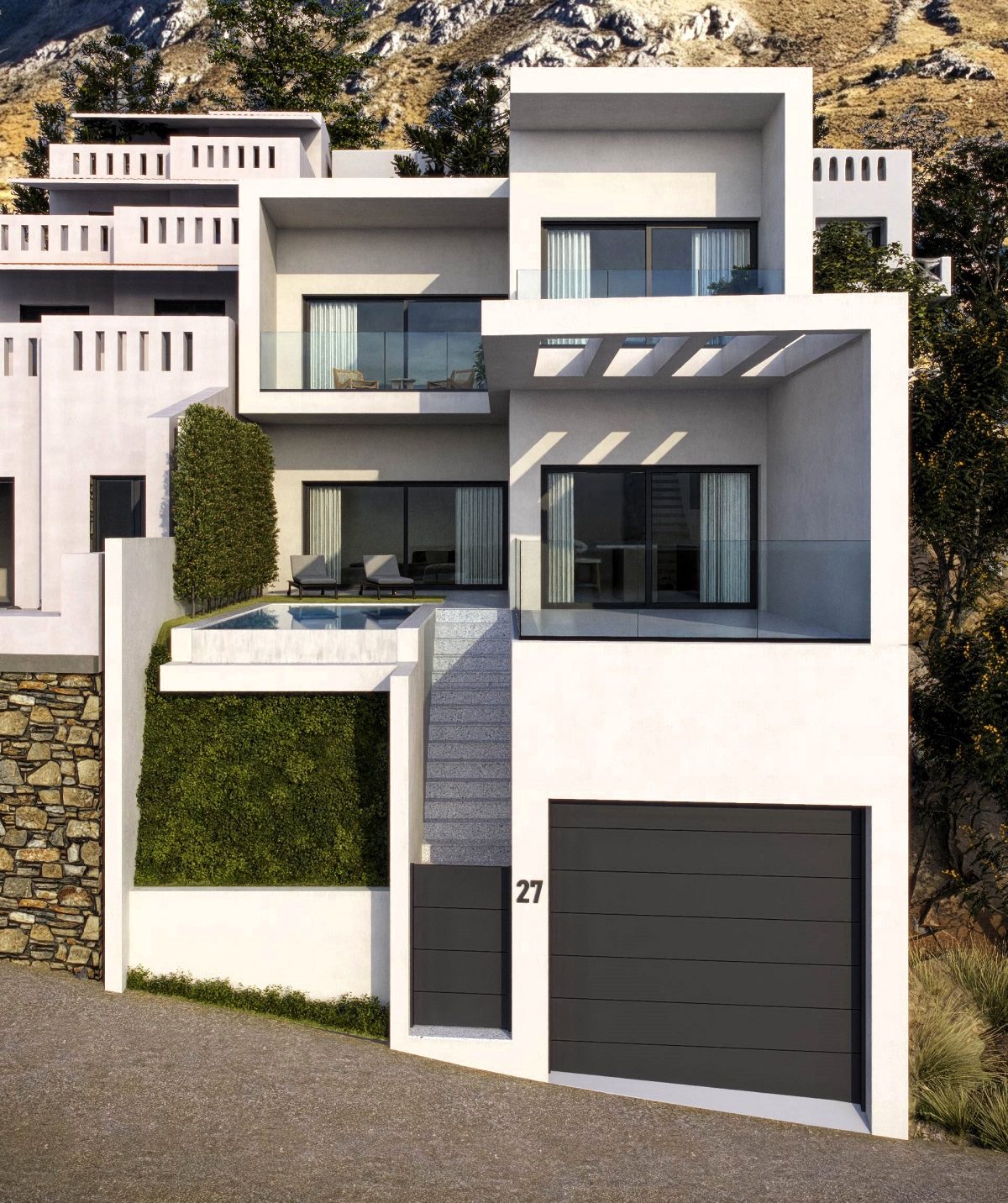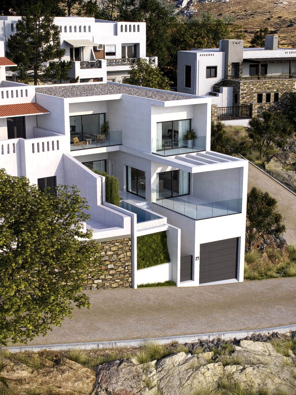 The project is designed for a 2-bedroom villa with a private swimming pool, maximizing unobstructed sea views and seamless indoor-outdoor living. With direct walking access to the beach and easy approach via asphalt road, the property combines convenience with exclusivity.