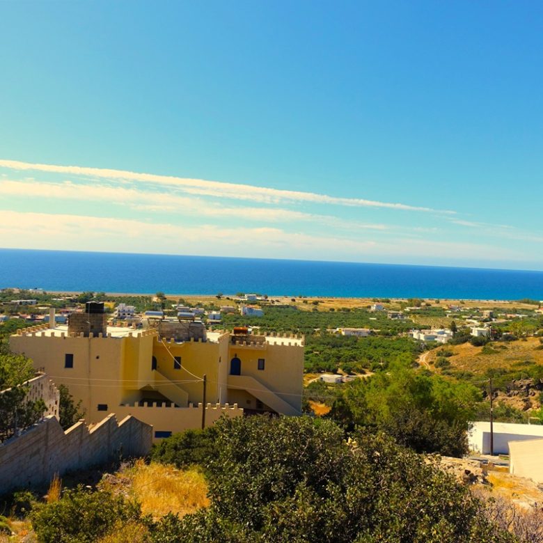 The property covers 6,200m² and features gentle slopes, offering panoramic views of the sea, the landscape, and the surrounding hills.